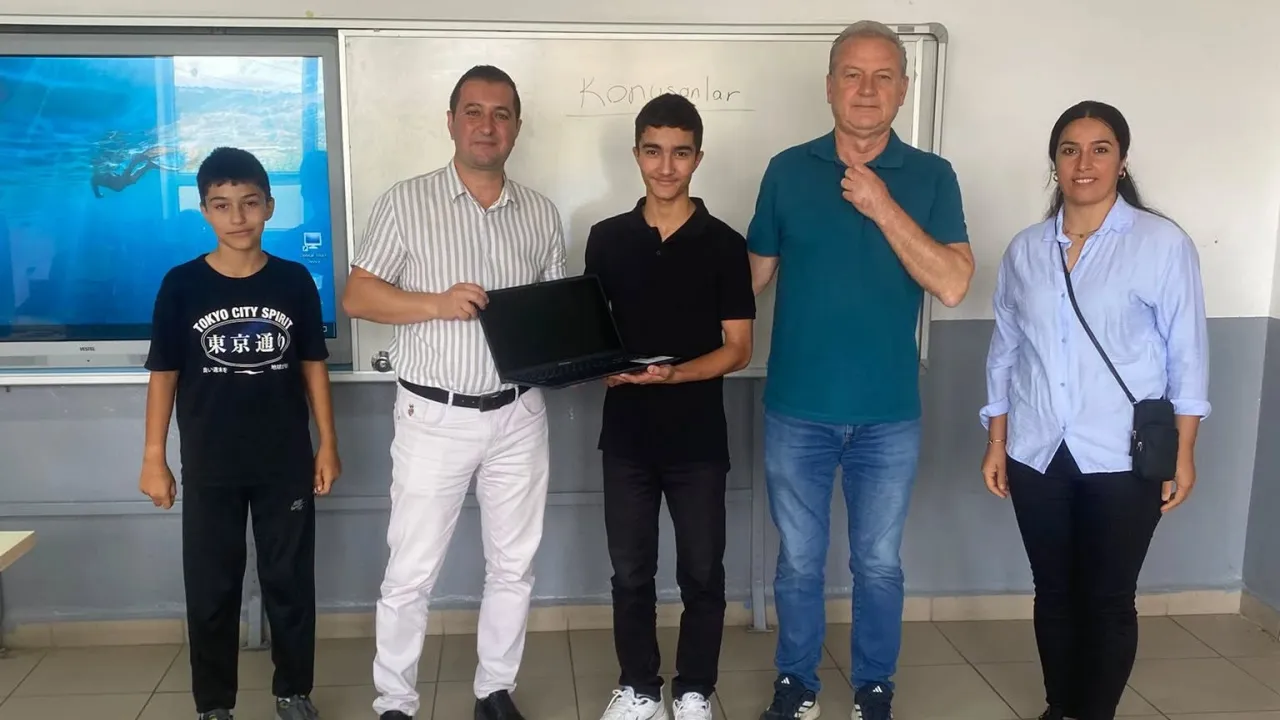 Kıral, başarısından dolayı Tuğra Karacan’a laptop hediye etti. Bu anlamlı ödül, öğrencinin eğitim hayatında daha verimli çalışmasına katkı sağlaması amacıyla verildi.