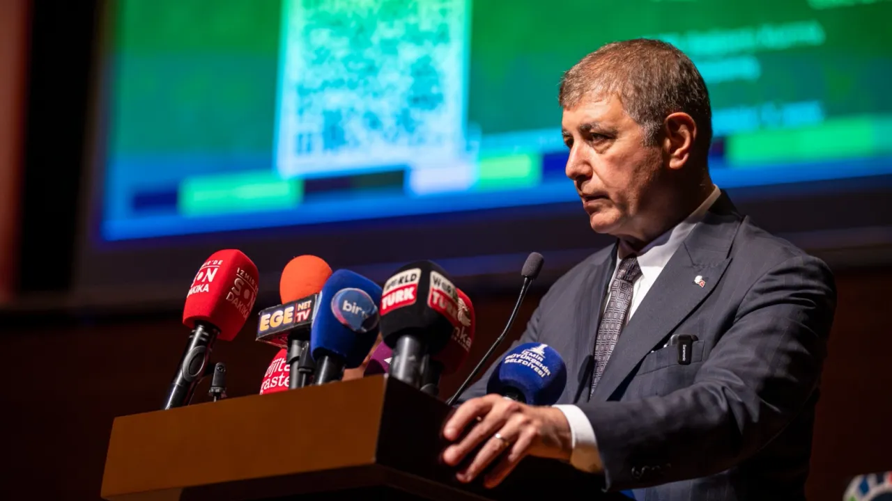 İzmir Büyükşehir Belediyesi’nin çevresel, sosyal ve yönetişim alanlarındaki performansını ve 2025 yılı hedeflerini ortaya koyan raporun tanıtımı Ahmed Adnan Saygun Sanat Merkezi’nde İzmir Büyükşehir Belediye Başkanı Dr. Cemil Tugay’ın ev sahipliğinde düzenlenen toplantıyla yapıldı.
