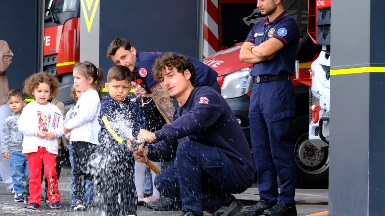 Ziyaret boyunca itfaiye araçlarına binen öğrencilerin mutlulukları gözlerinden okundu. Çocuklar ayrıca itfaiyeci abileriyle birlikte suyla müdahale fırsatı buldu.