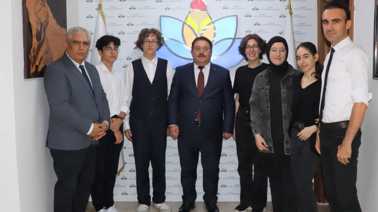 Sakarya Cevat Ayhan Fen Lisesi, TEKNOFEST 2025 finallerinde üç projeyle İstanbul'da yarışacak. Yapay Zeka ve Akıllı Ulaşım projeleriyle tanına öğrenciler Sakarya İl Milli Eğitim Müdürü Coşkun Bakırtaş'ı makamında ziyaret etti.SAKARYA (İGFA) - İstanbul'da düzenlenecek olan #TEKNOFEST 2025 finallerine 3 projeleriyle katılmaya hak kazanan Sakarya Cevat Ayhan Fen Lisesi öğrencileri; Okul Müdürü Zafer Levent Soyhan ve Okul Bilişim Teknolojileri Öğretmeni Dr. Fatih Küslü ile birlikte İl Millî Eğitim Müdürü Coşkun Bakırtaş'a ziyarette bulundu.